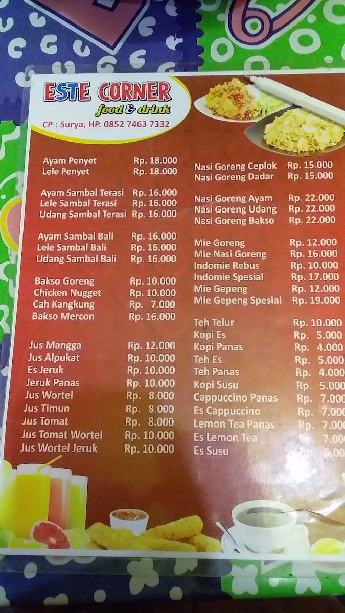 Welcome to Este Corner Cafe, a delightful culinary spot nestled in the heart of Kota Solok, Sumatera Barat. Located at Jl. Prof. Dr. Moh. Yamin Sh No.54, this cafe invites you to experience a blend of comfort and flavor. With a cozy atmosphere and both traditional seating and casual lesehan options, it's perfect for family gatherings or a casual outing with friends.